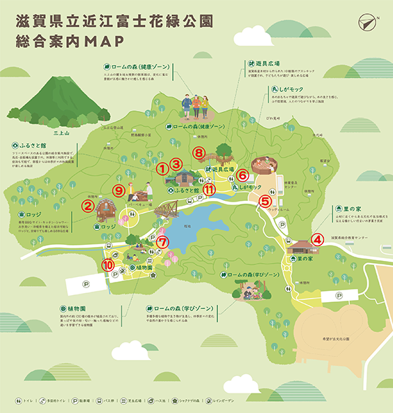 三上山(通称:近江富士)のふもと、花と緑に囲まれた広大な園地には