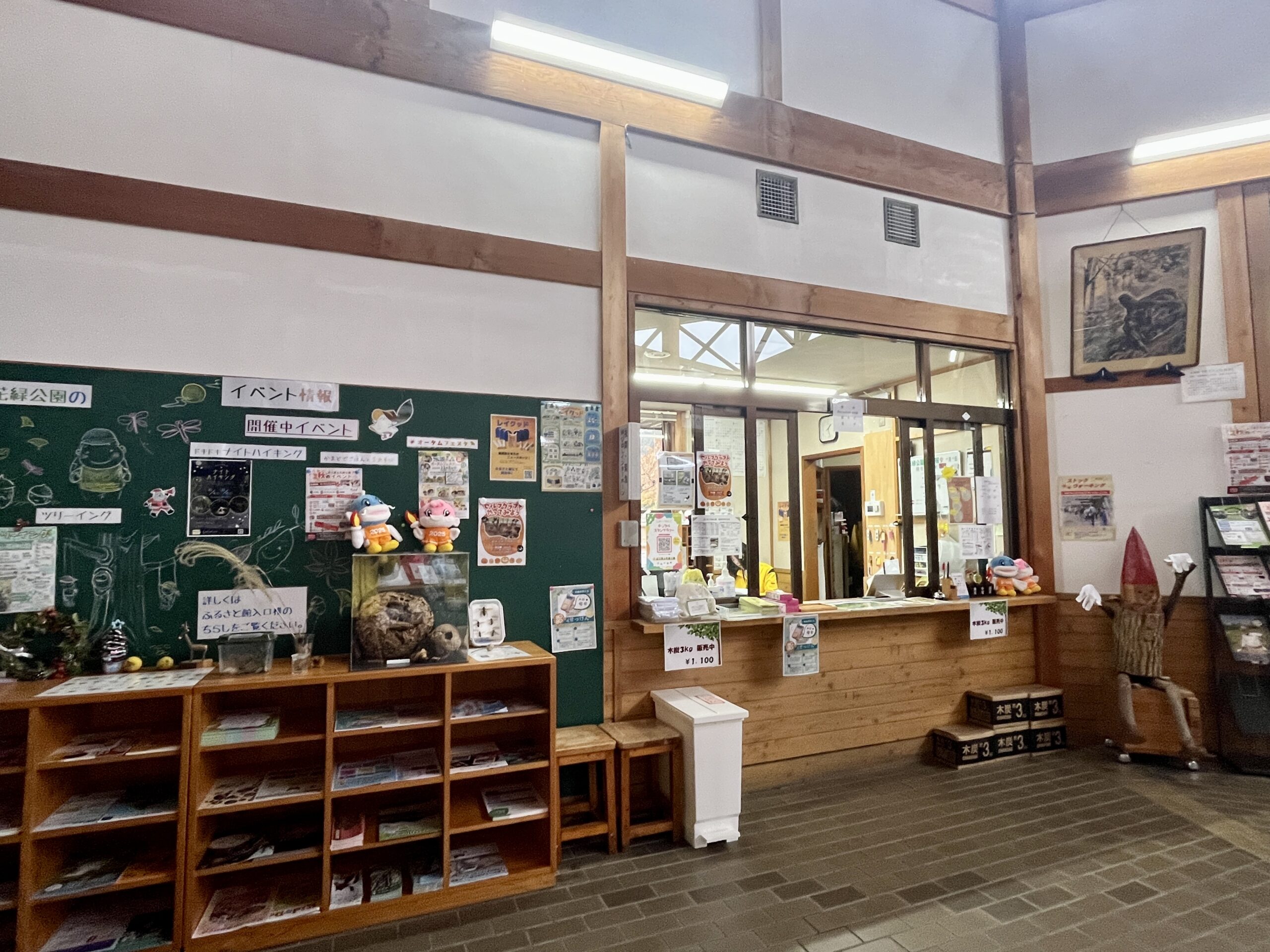 宿泊できる和室(6部屋)のほか、お土産の販売や、木のおもちゃ『ズレンガ』で遊べるスペースがございます。公園の総合案内所もこちらです。